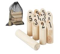 Relaxdays Kubb Juego, Ajedrez Vikingo, Piezas Madera, Exterior, con Números, para Adultos y Niños, con Bolsa, Natural
